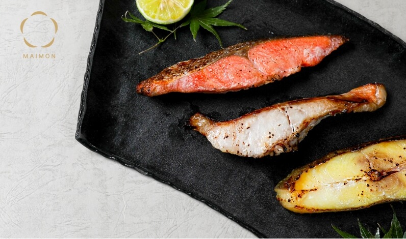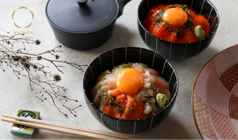 カニ類(ずわい蟹・毛蟹・たらば蟹)・牡蠣・ほたて・いくら・えび・明太子・たらこ・いか・ネギトロ・海苔・海藻・数の子・まいもんオリジナル(だし・醤油・ポン酢・のり汁・緑茶)・おせち料理